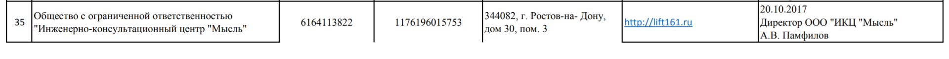 ООО ИКЦ "Мысль" внесена в реестр экспертных организаций, осуществляющим техническое освидетельствование и обследование подъемных платформ для инвалидов, пассажирских конвейеров (движущихся пешеходных дорожек) и эскалаторов в соответвтвии с Постановлением Правительства Российской Федерации от 24 июня 2017 года № 743 "Об организации безопасного использования и содержания лифтов, подъемных платформ для инвалидов, пассажирских конвейеров (движущихся пешеходных дорожек), эскалаторов, за исключением эскалаторов в метрополитенах"